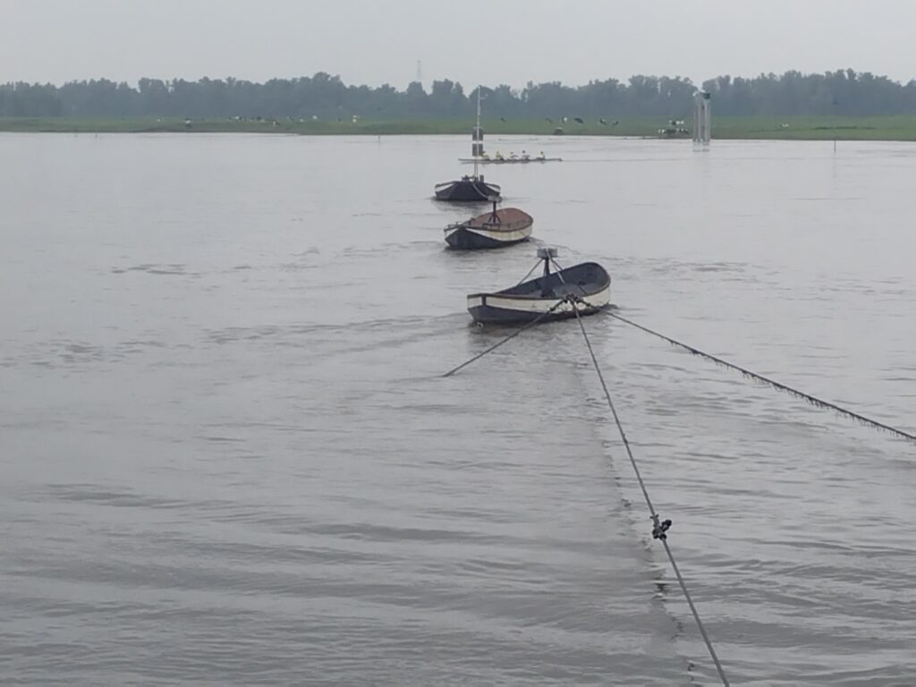 veel te sterke stroming. Ik gaf vol gas achteruit en kon zo deze roeiers vrije doorgang geven.